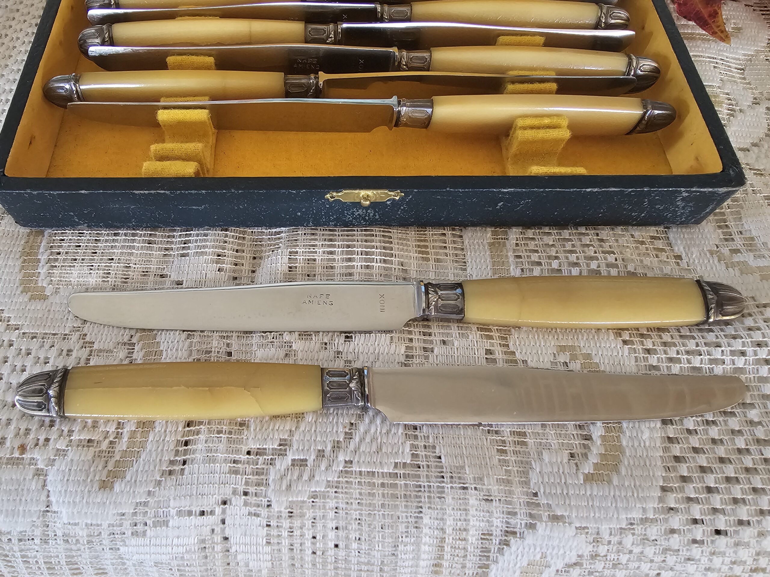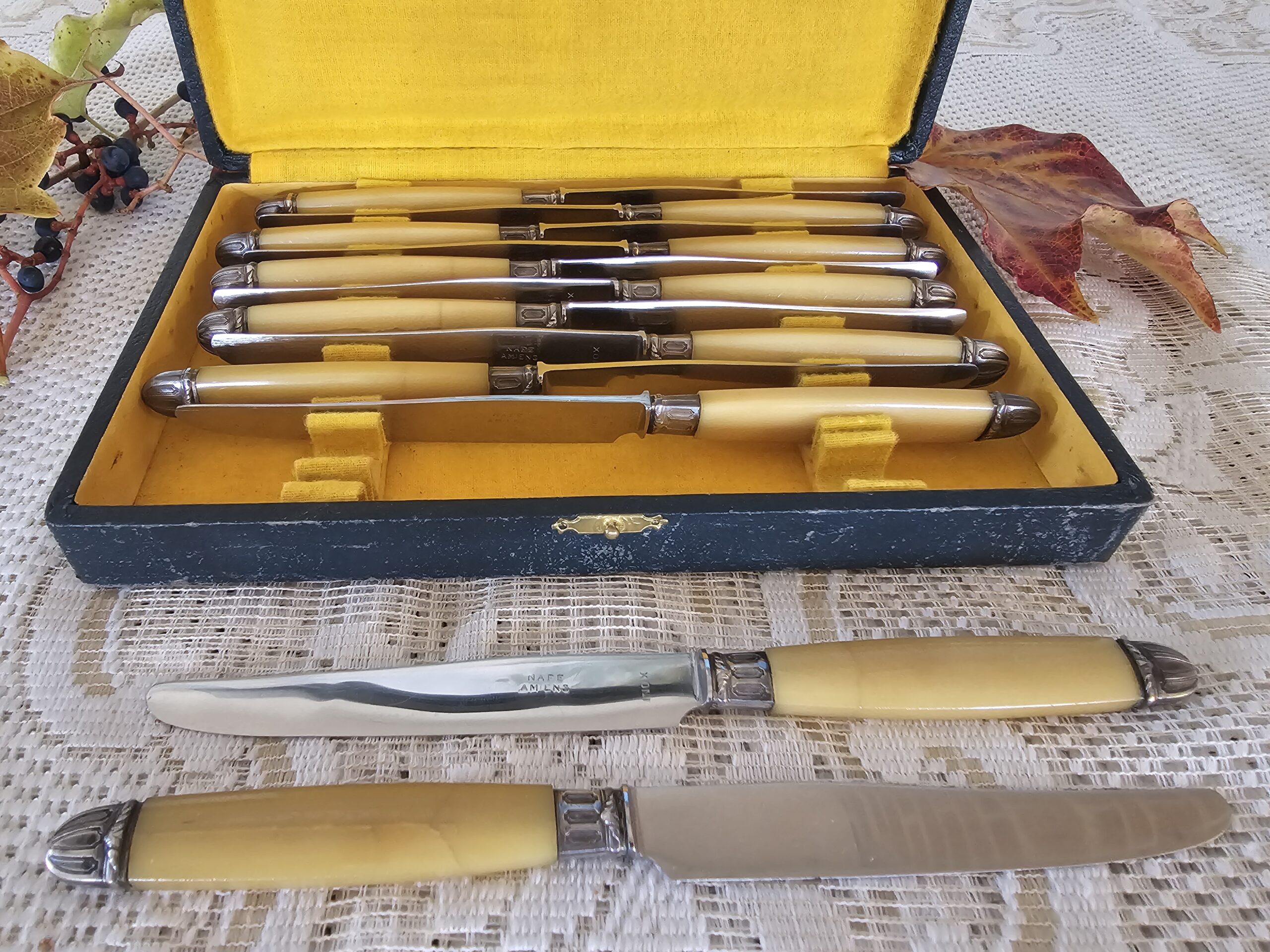 Coffret Ancien de Couteaux à Manche résine Ivoire Marbré