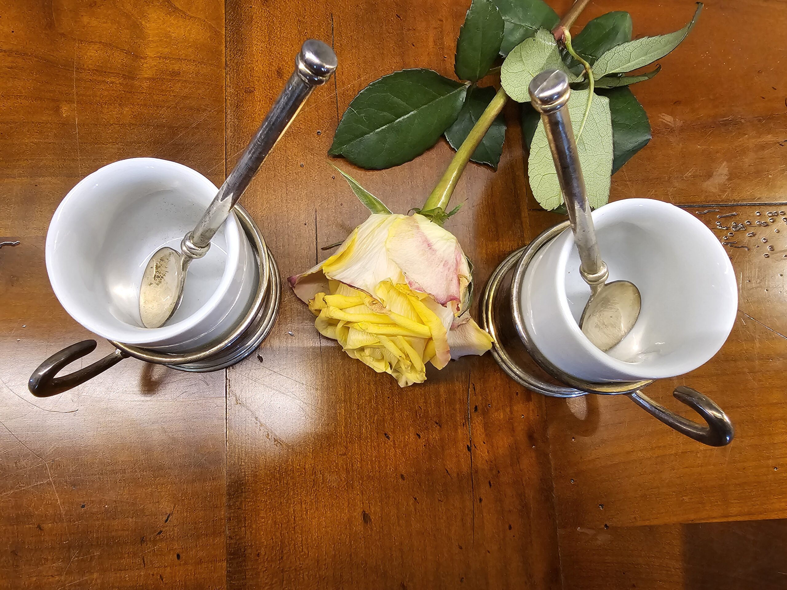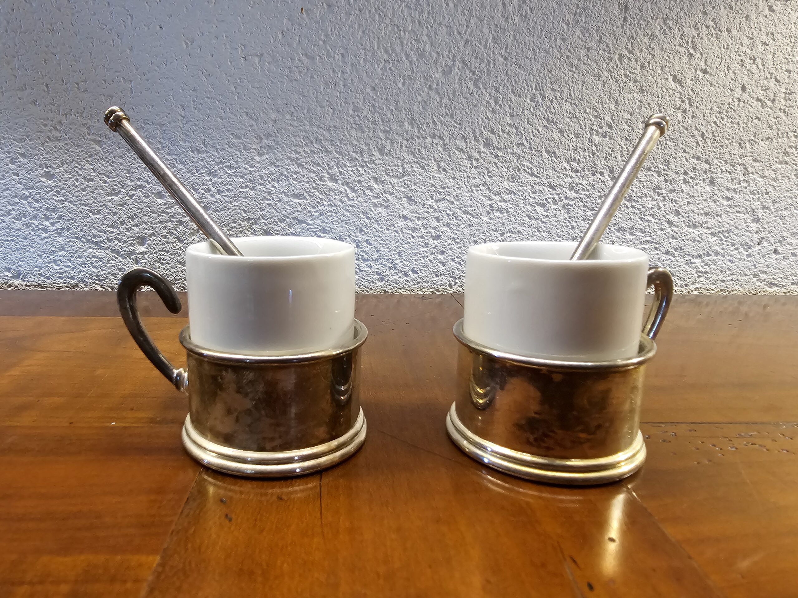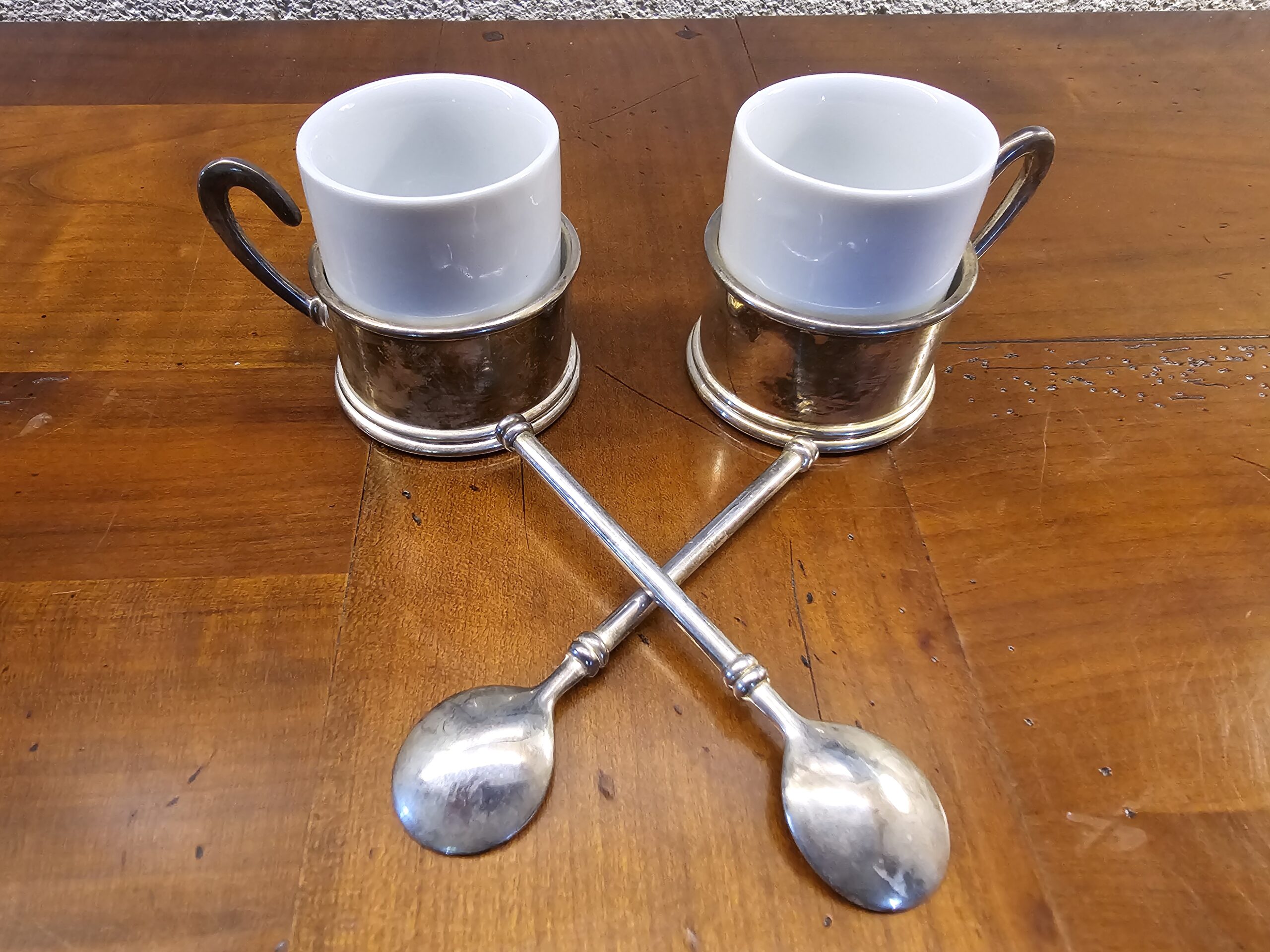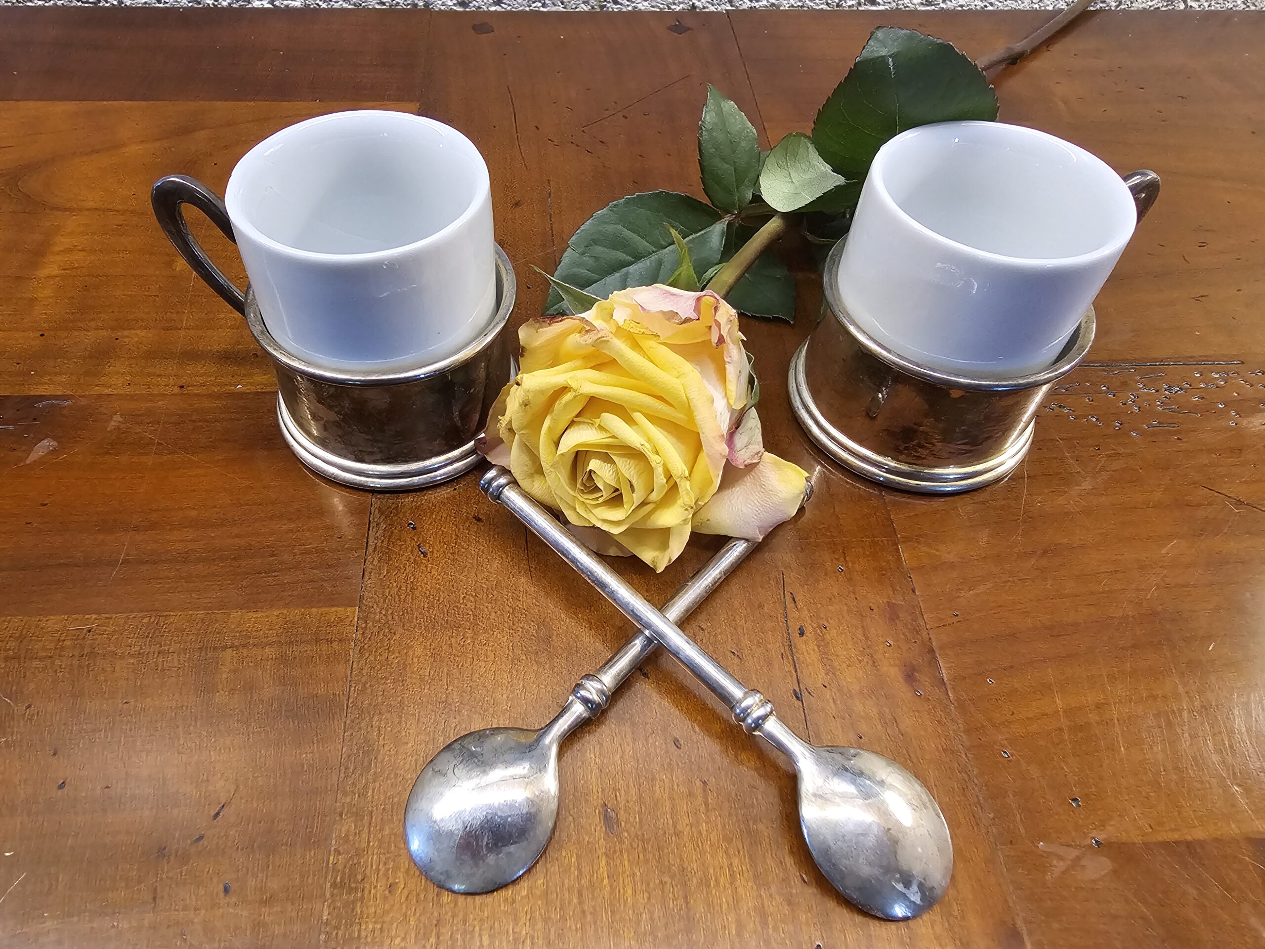 Le Duo de Tasses à Café Anciennes avec Porte-Tasses Métal Argenté : Élégance et Intemporalité
