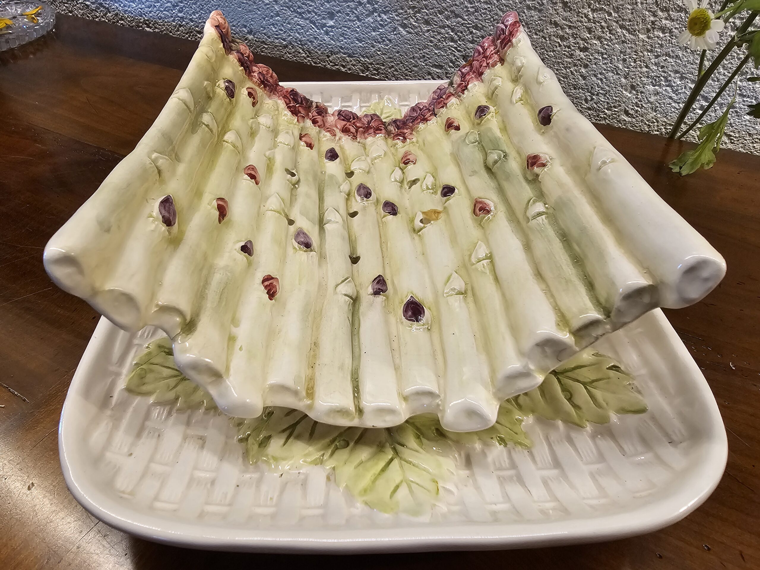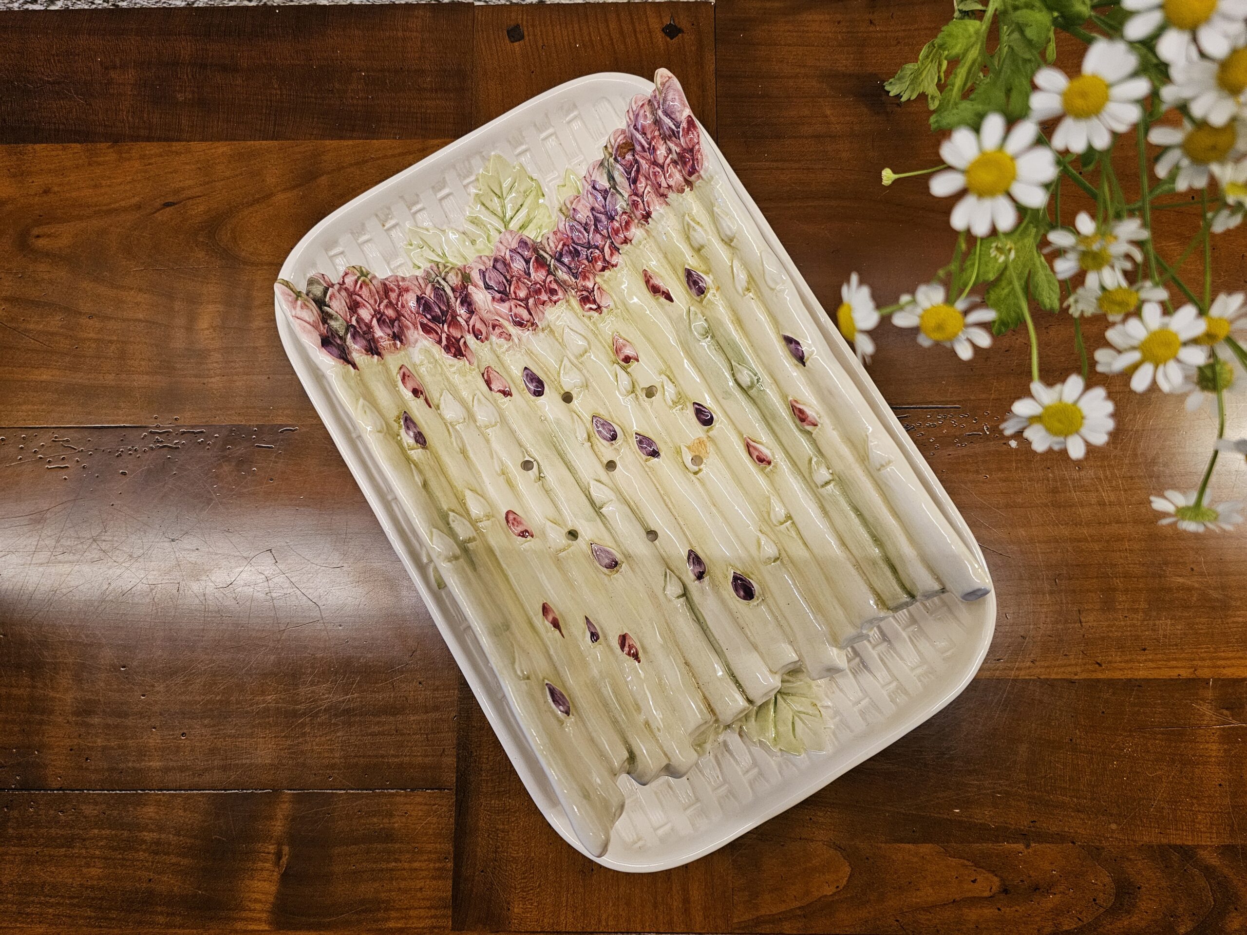Traditionnellement utilisé pour présenter les asperges, ce plat peut aussi accueillir des légumes de saison, des antipasti ou des fruits. Il transforme un simple service en un moment élégant et convivial.