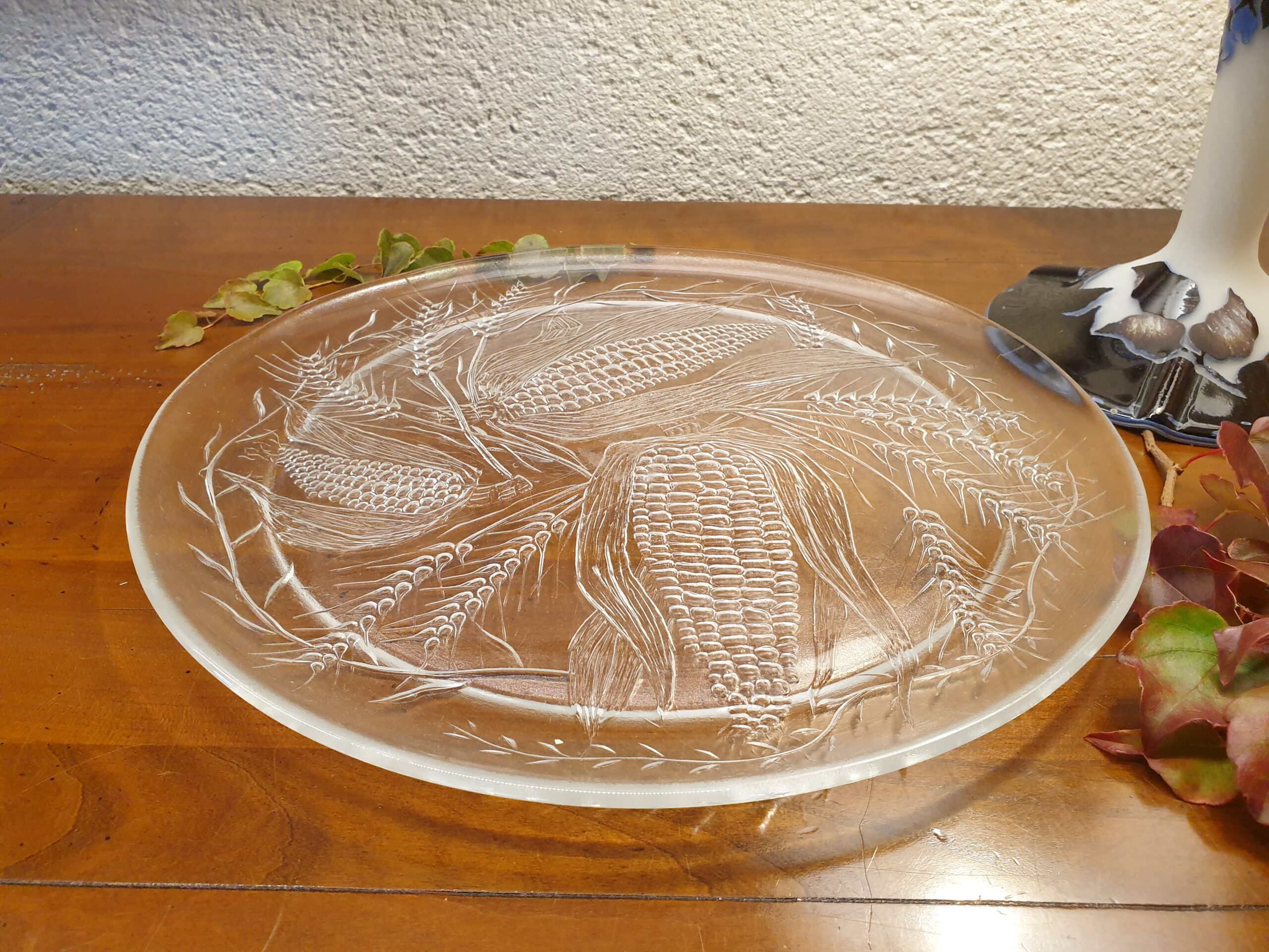 Joli Plateau en Verre Décoré d’Épis de Maïs et de Blé : Raffinement et Fraîcheur