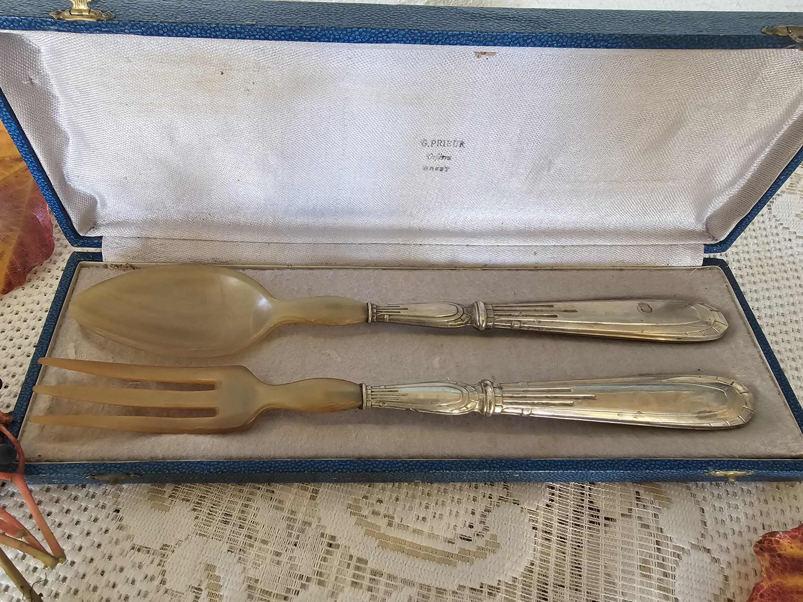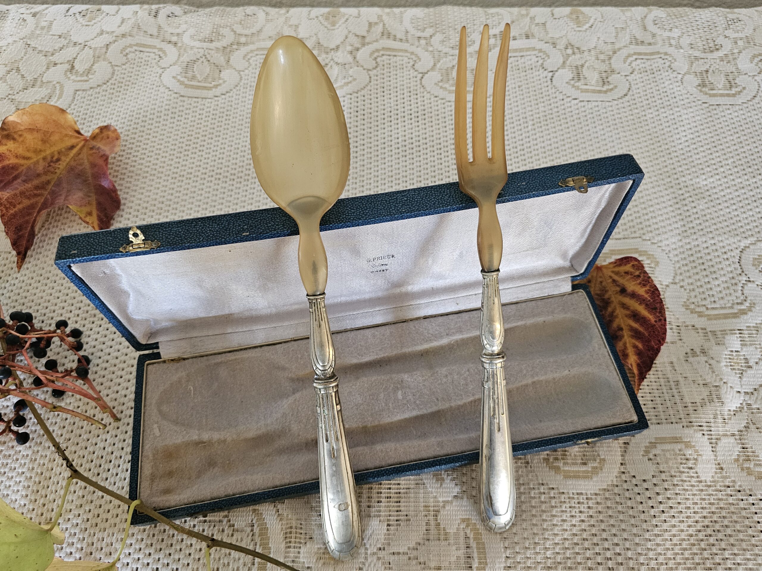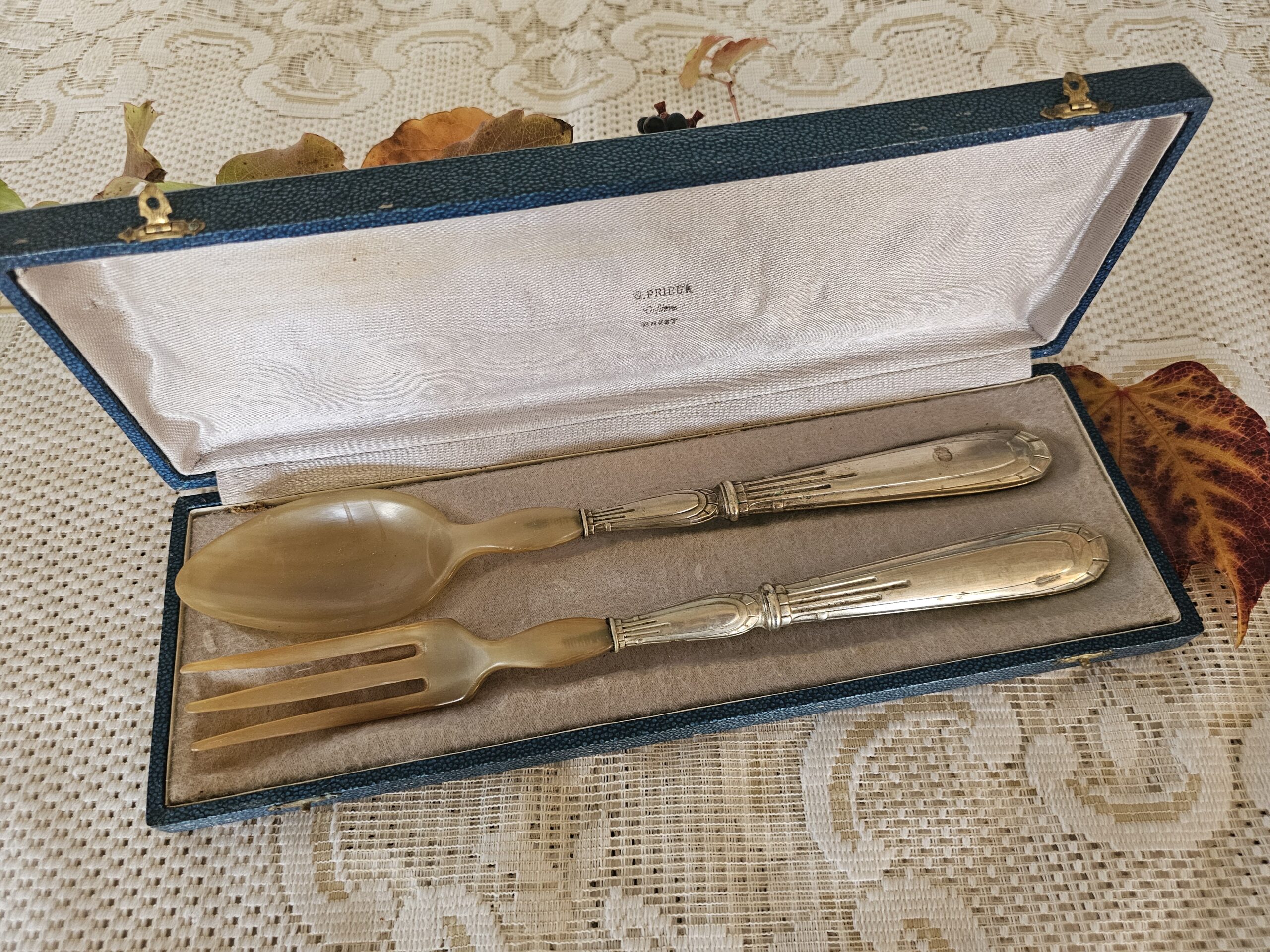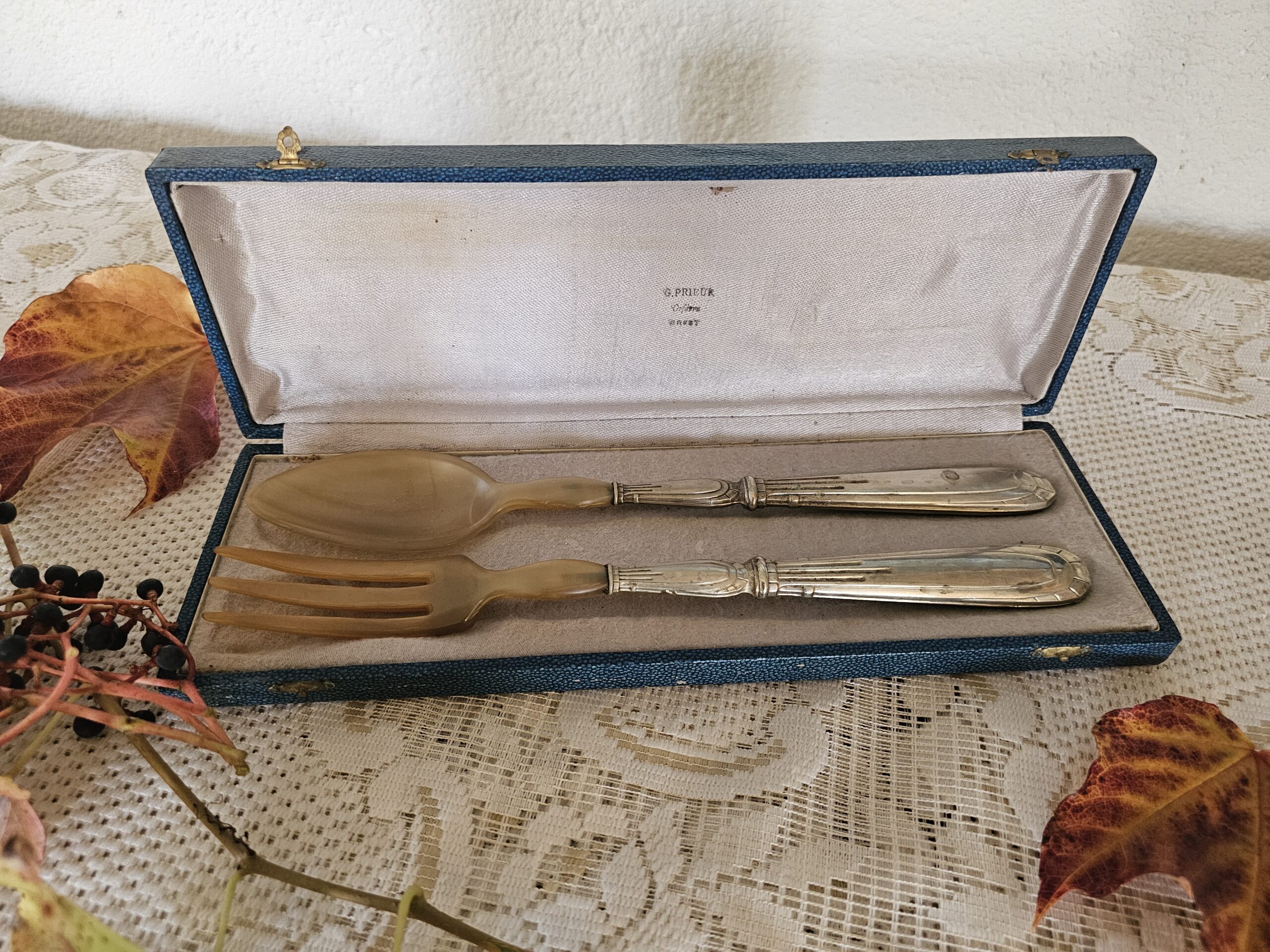Service salade Ancien Cuillère et Fourchette de Service – Présentation en Coffret